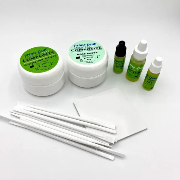 کیت کامپوزیت سلف کیور پرایم دنت محصولی باکیفیت از کمپانی پرایم دنتال آمریکا است که برای ترمیمهای دندانی بدون نیاز به دستگاه لایت کیور طراحی شده است. این کیت شامل دو خمیر 15 گرمی (بیس و کاتالیست)، دو سرنگ 3 میلیلیتری کاتالیزور و بیس باندینگ، یک سرنگ 7 میلیلیتری ژل اچینگ، پدهای اختلاط و اسپاتول است. این کامپوزیت سلف کیور (خودپخت) به دلیل سهولت استفاده، مقاومت بالا و عدم نیاز به نورپخت، برای ترمیمهای قدامی و خلفی، بهویژه در شرایطی که تجهیزات لایت کیور در دسترس نیست، ایدهآل است. این محصول با چسبندگی عالی به ساختار دندان و زمان سفت شدن مناسب، انتخابی کارآمد برای دندانپزشکان است.